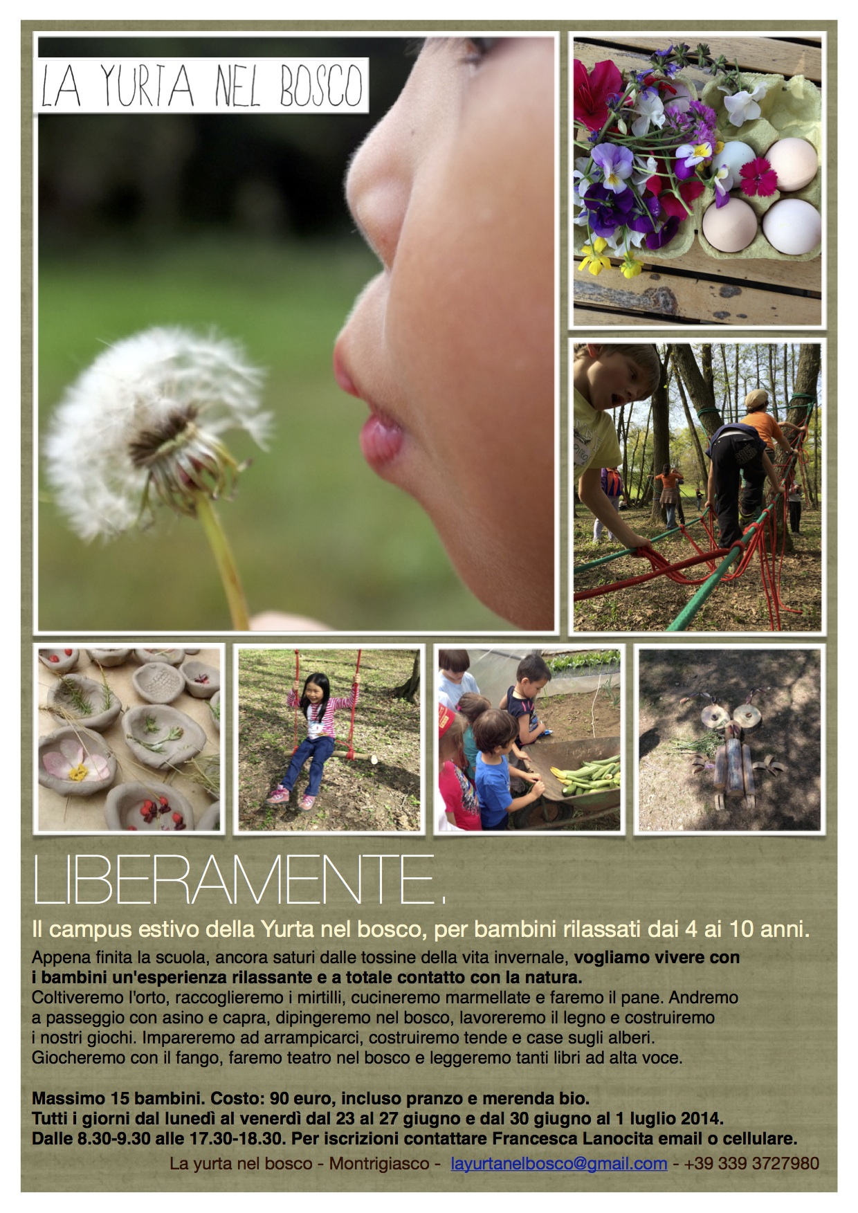 Dal 23 al 27 giugno e dal 30 giugno al 4 luglio 2014, due settimane di immersione nel bosco e nella sua pace per iniziare le vacanze ritrovando il contatto…